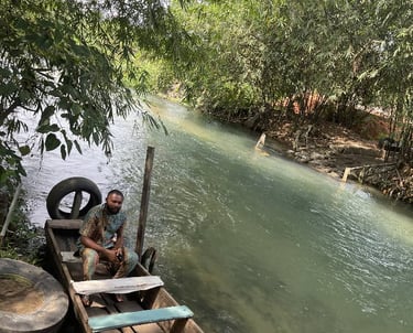 I sat quietly in a wooden canoe tied to the bank, observing the river and community members coming to it. The landscape exhibited material traces of socio-ecological adaptation and embodied memory: repurposed tyres, wooden planks worn smooth through repeated use, and a shoreline continually reworked through cautious, incremental engagement. These artefacts reflect a relational mode of environmental interaction grounded in attentiveness rather than extraction, with practices recalibrated through experiential knowledge and sustained by a reconfigured trust in the river as a living, responsive system.